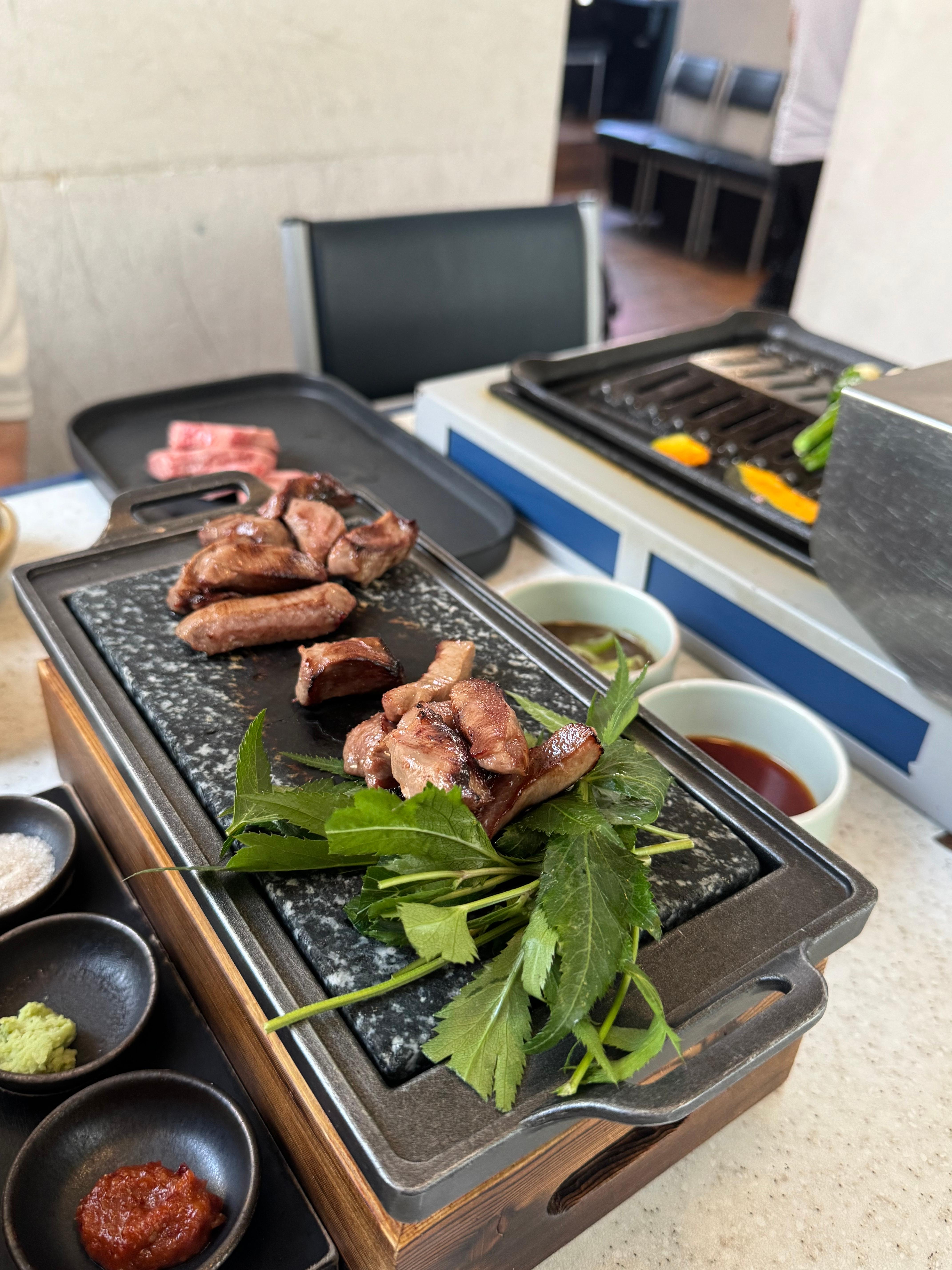 → 고급 소 혀 부위. 쫄깃하고 육즙이 살아 있으며 씹을수록 고소함이 느껴짐.